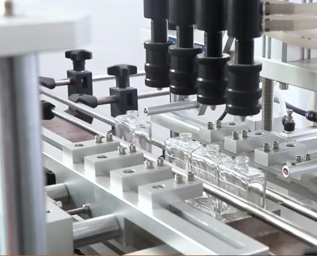 ثم نقوم بتعبئة العطر في الزجاجات المخصصة و وضعه بالكرتون ثم تغليفه بالسلفان.